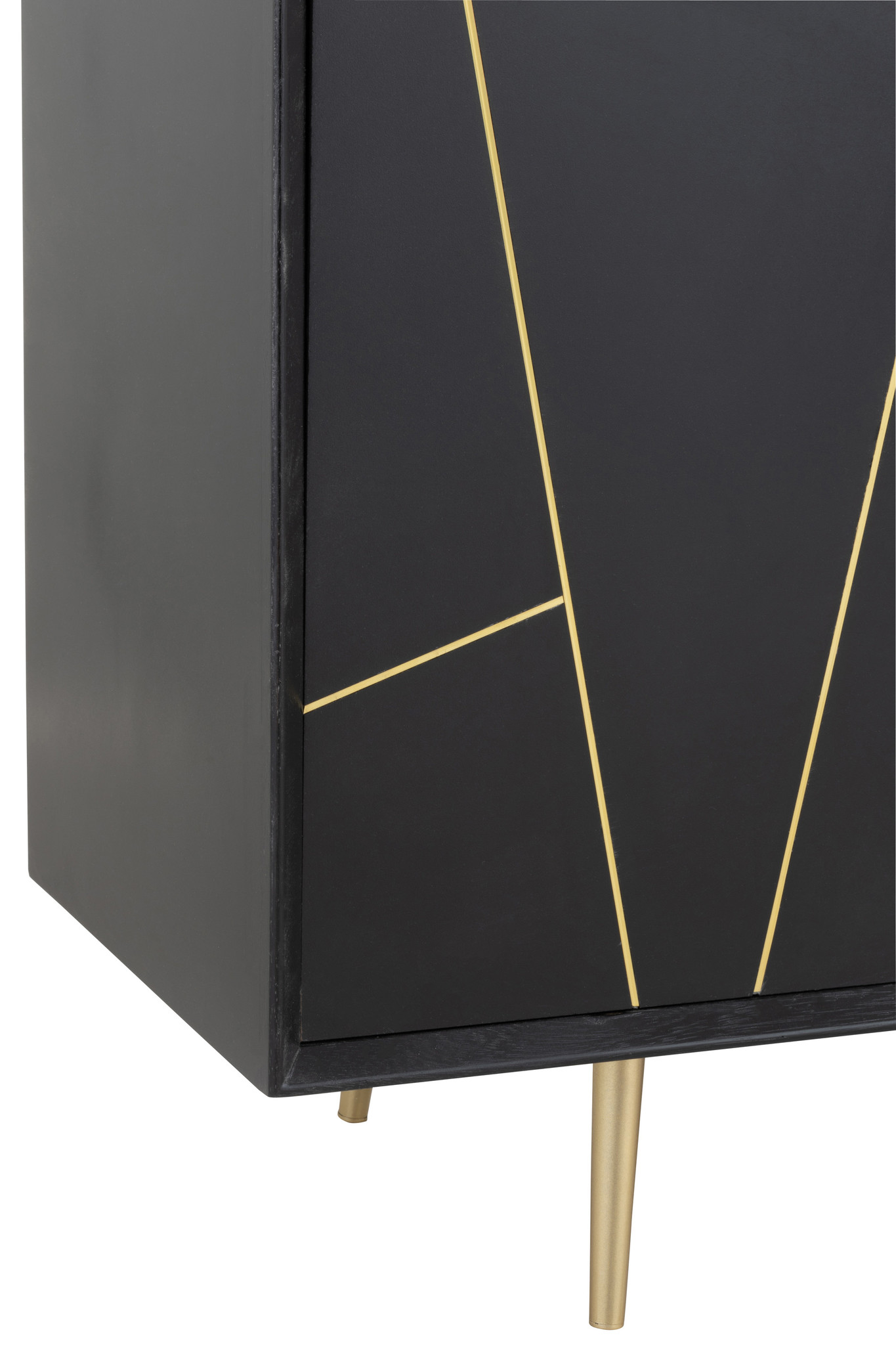 Baseline – Dressoir – MDF – zwart – 4 deuren – 2 schappen – gouden afwerking