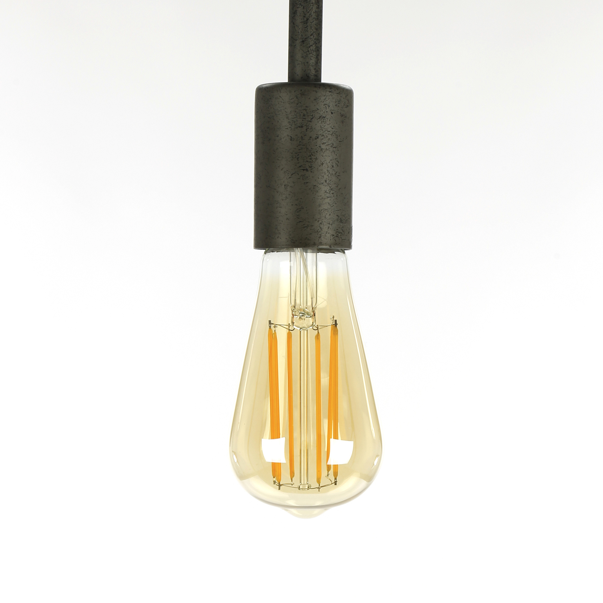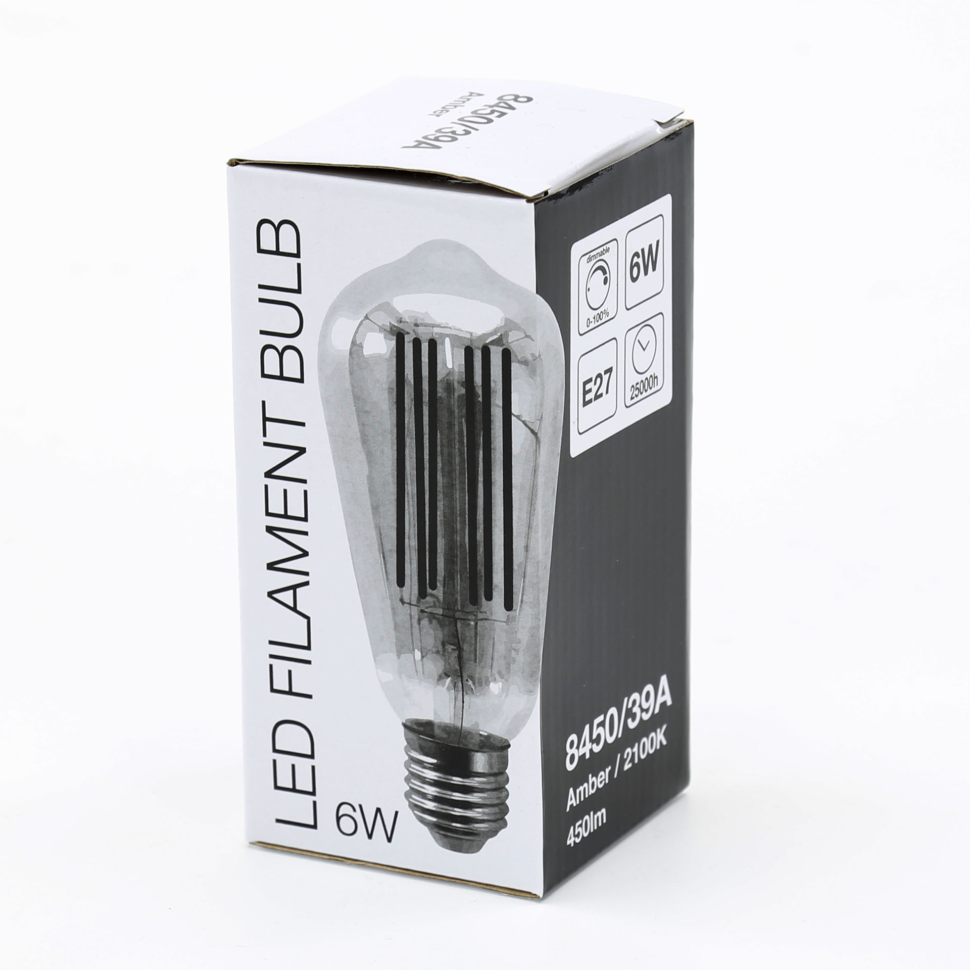 Deze lichtbron LED filament heeft amberkleurig glas en heeft de vorm van een druppel.
