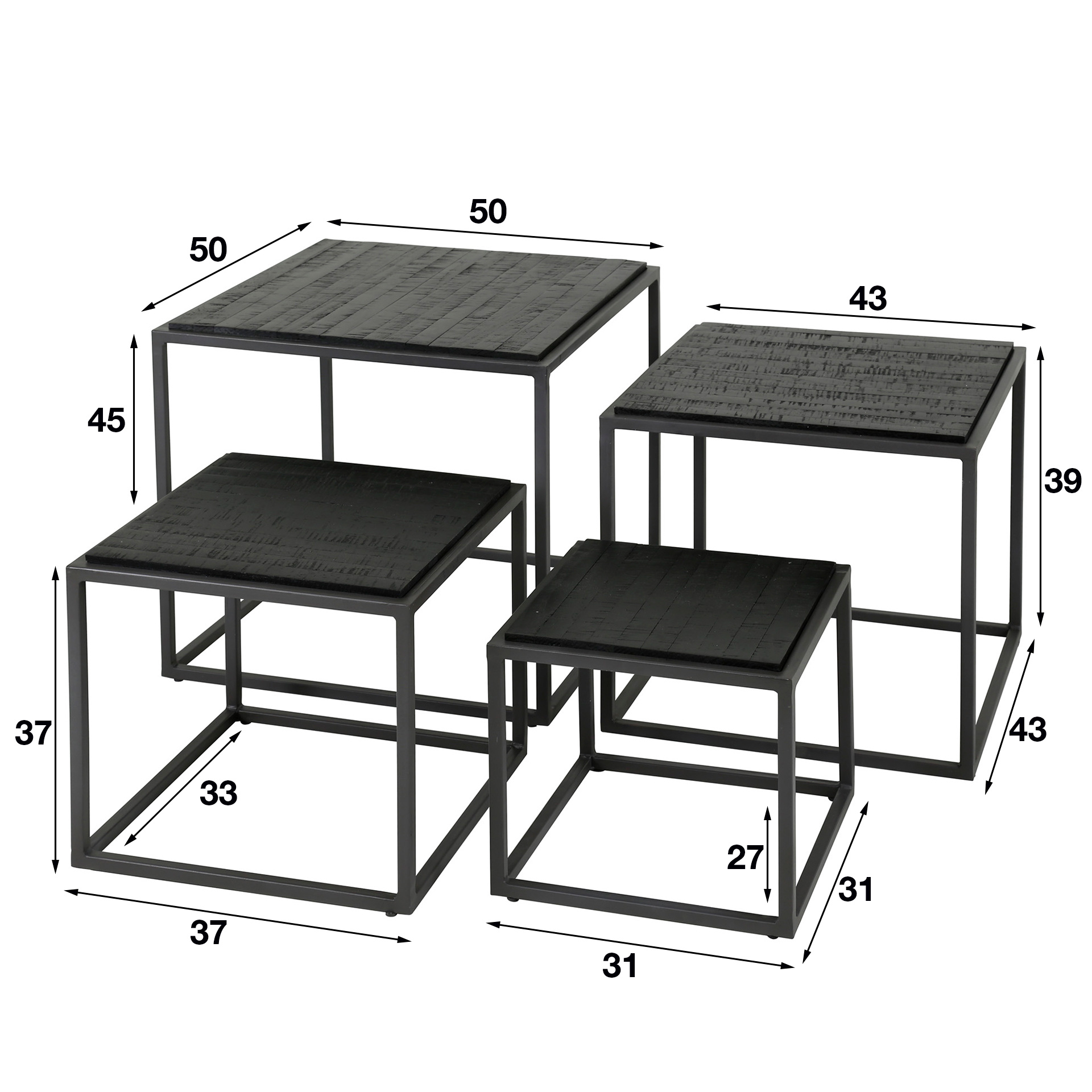 Black Diamond – Salontafel – set van 4 – vierkant – verweerd teakhout – gun metaal – zwart