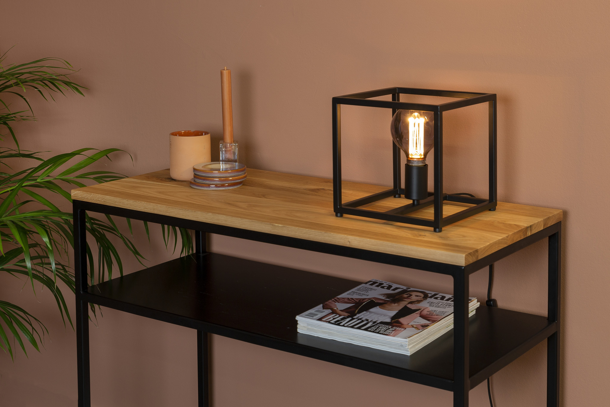 Industriële kooi tafellamp vervaardigd uit een zwart stalen frame met 1 lichtpunt (niet meegeleverd)