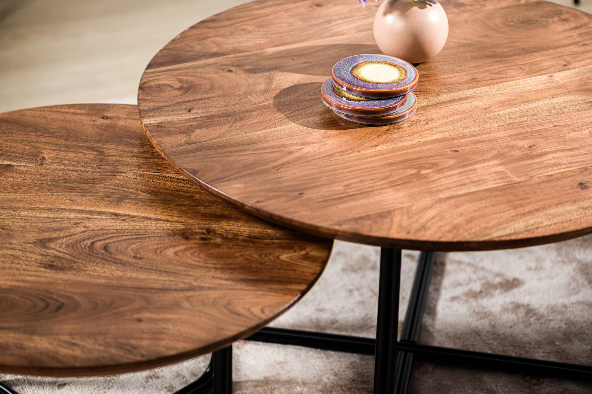 Cross Scandinavian – Salontafels – set van 2 – rond – acacia – naturel – stalen poten – geplooid
