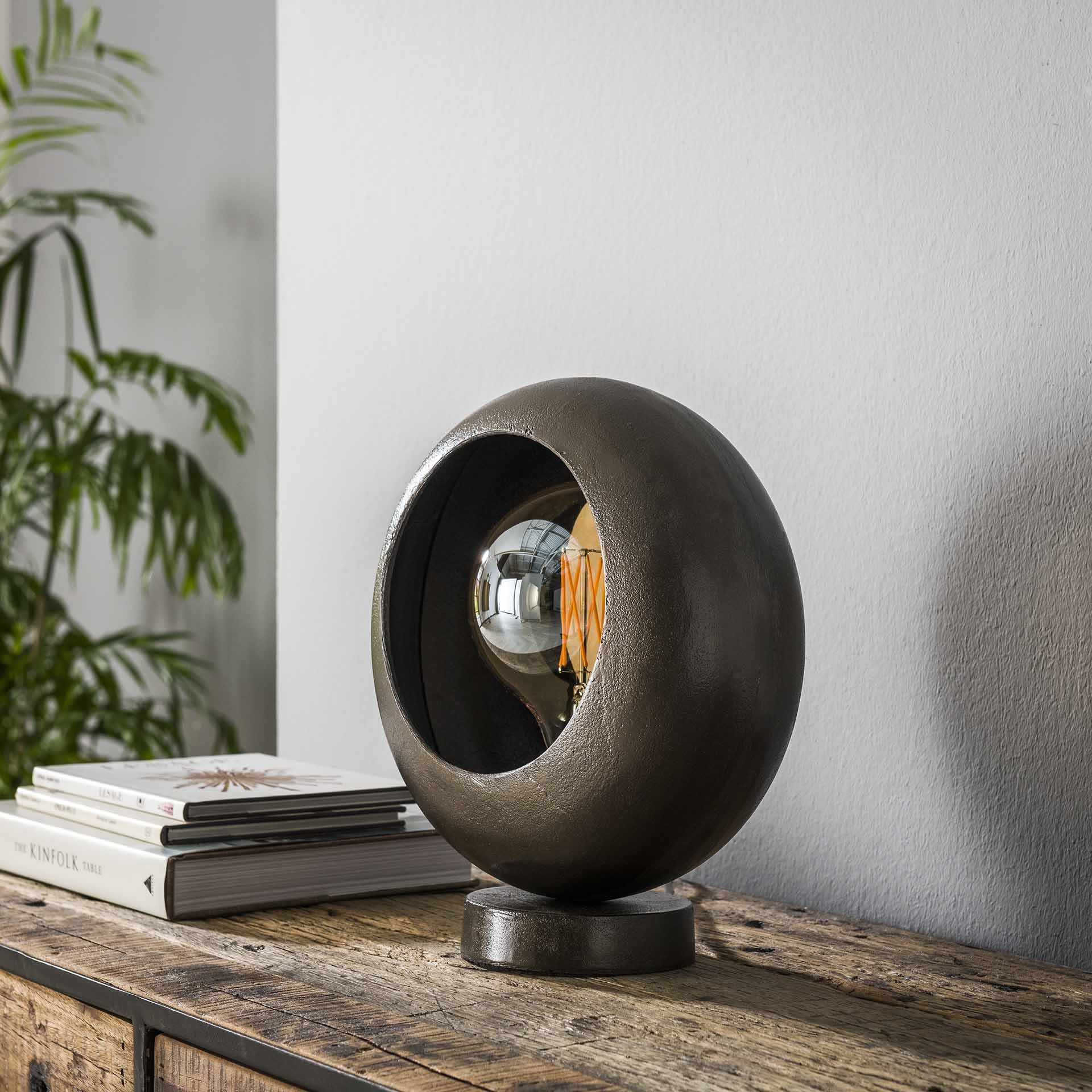 Luna – Tischleuchte – Aluminium-Sandguss – schwarzer Nickel – Vollmond