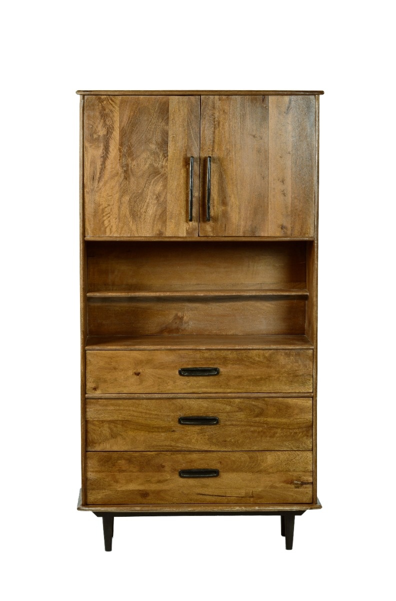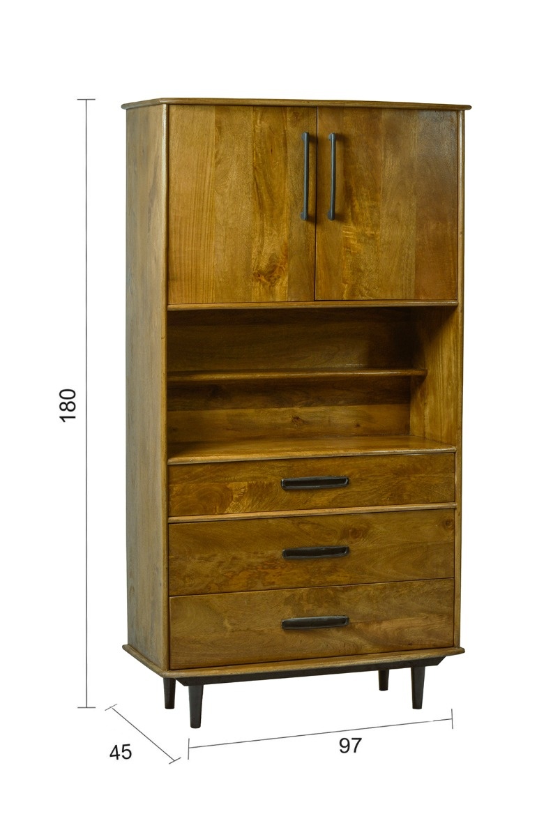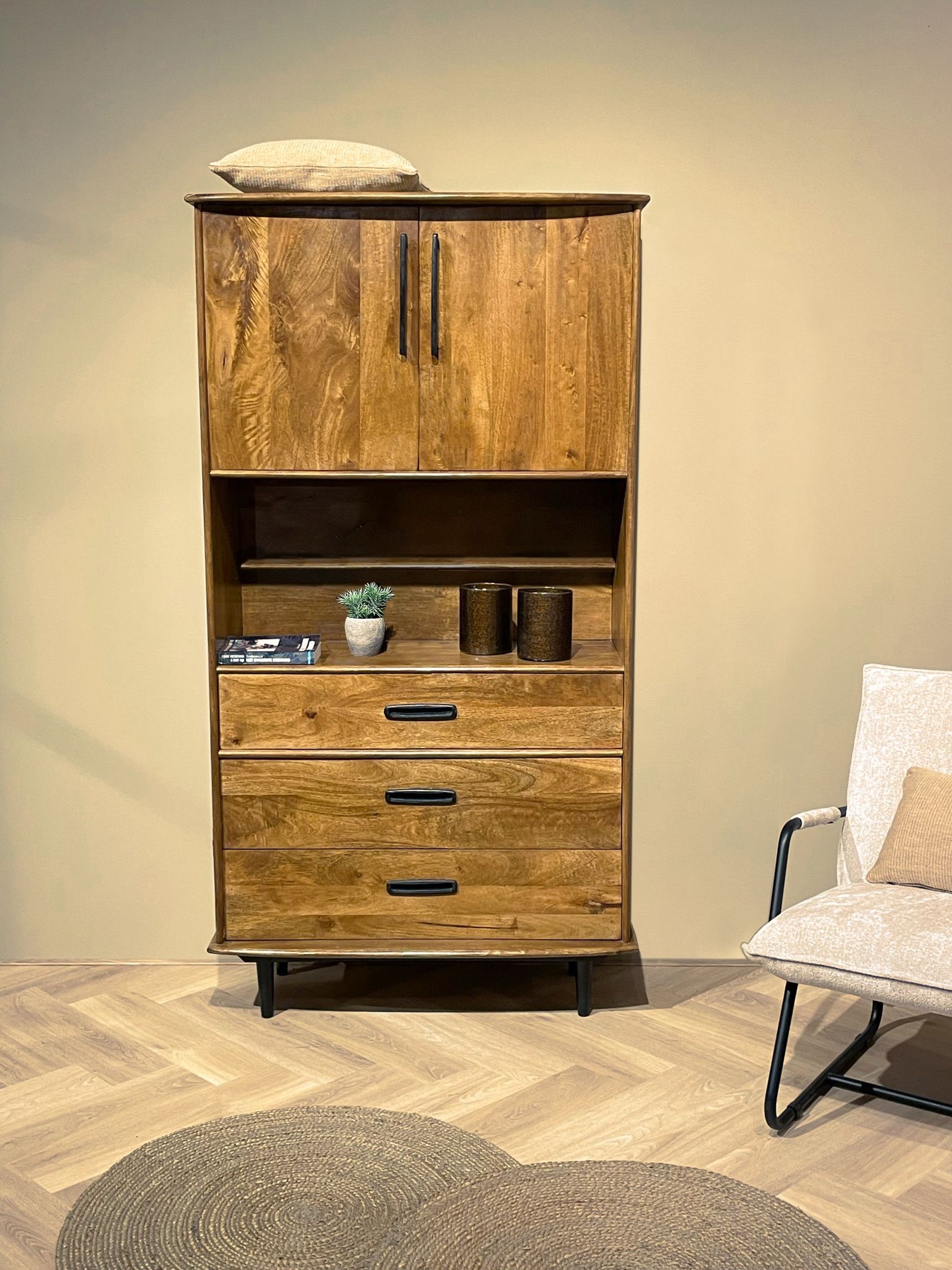 Nostalgic Retro – Buffetschrank – Mangoholz – braun – 3 Schubladen – Nische – 2 Türen – DuVerger Home
