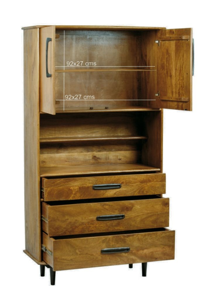 Nostalgic Retro – Buffetschrank – Mangoholz – braun – 3 Schubladen – Nische – 2 Türen