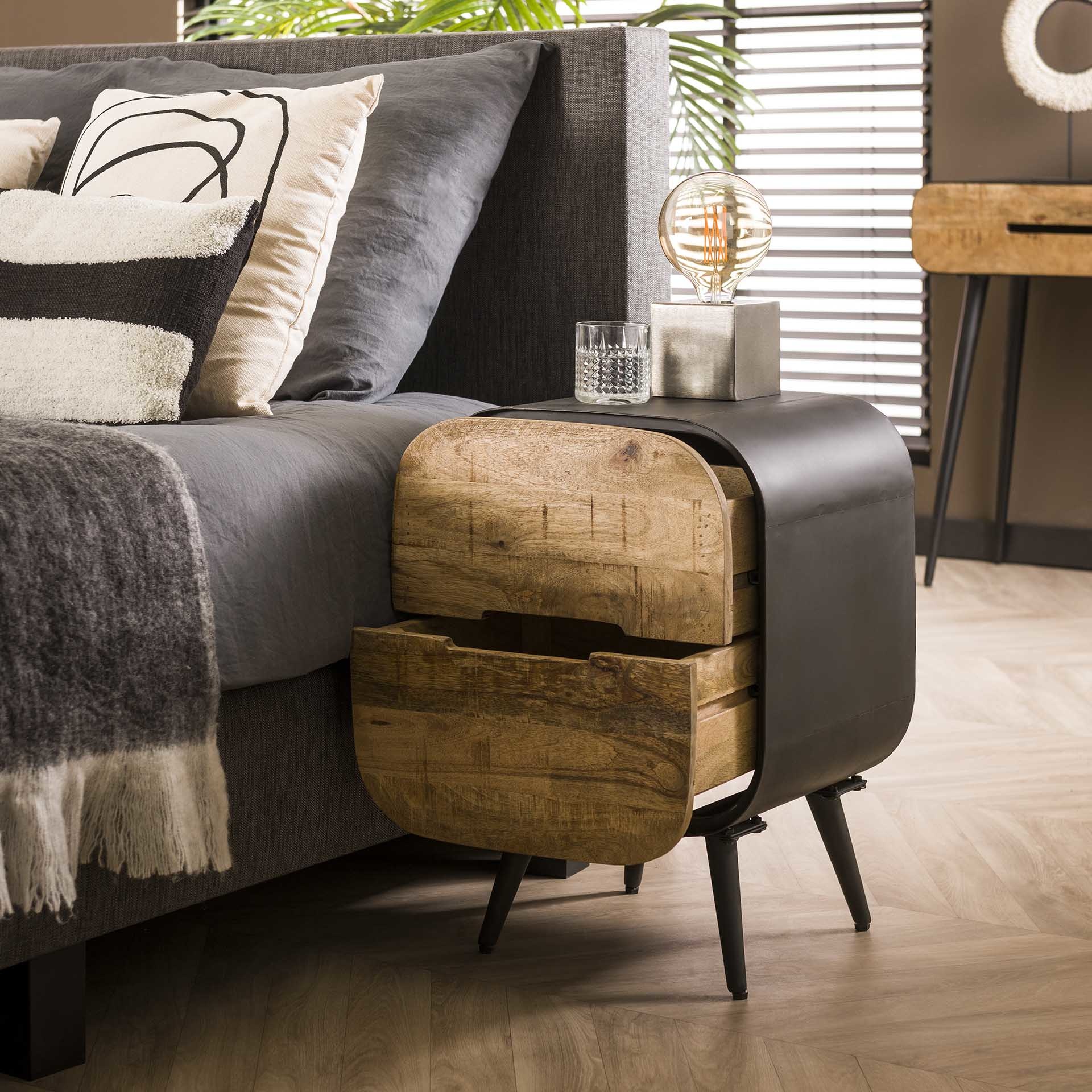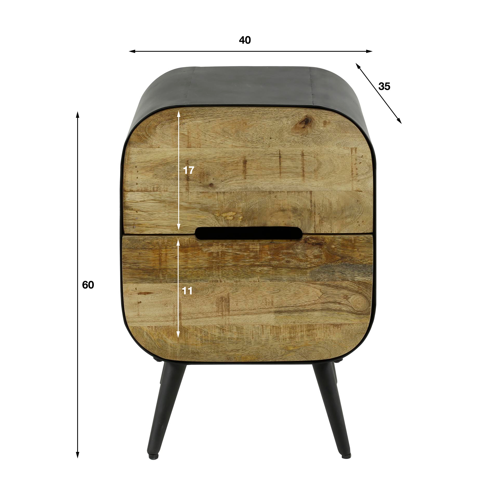 Retro Mango – Nachttisch – Mango – natur – 2 Schubladen – Metall
