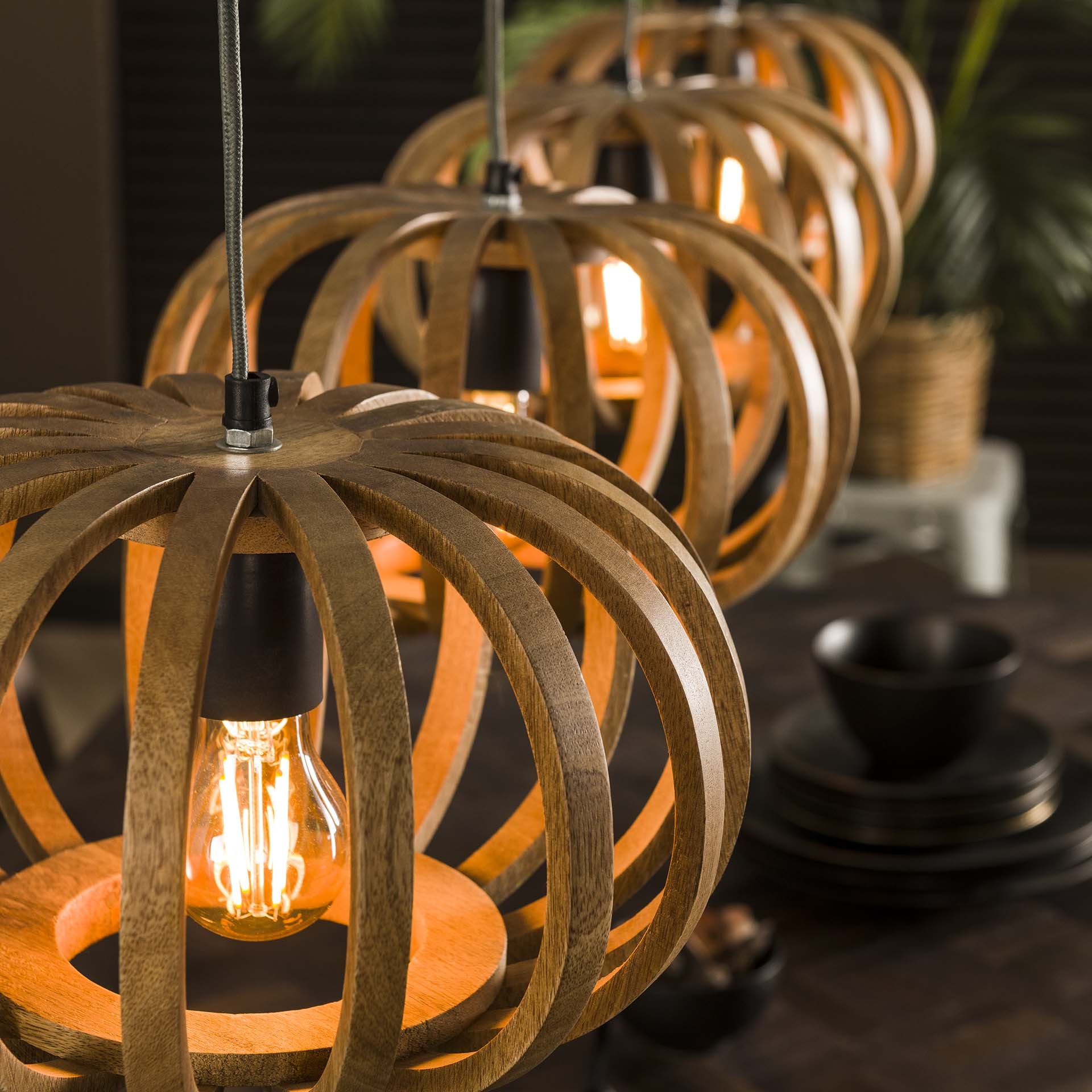 Diese stimmungsvolle Hängelampe ist aus massivem Mangoholz gefertigt. Die Holzstäbe sorgen für eine schöne Lichtverteilung in Ihren Wohnräumen. Ein echter Blickfang! Leuchtmittel nicht enthalten.