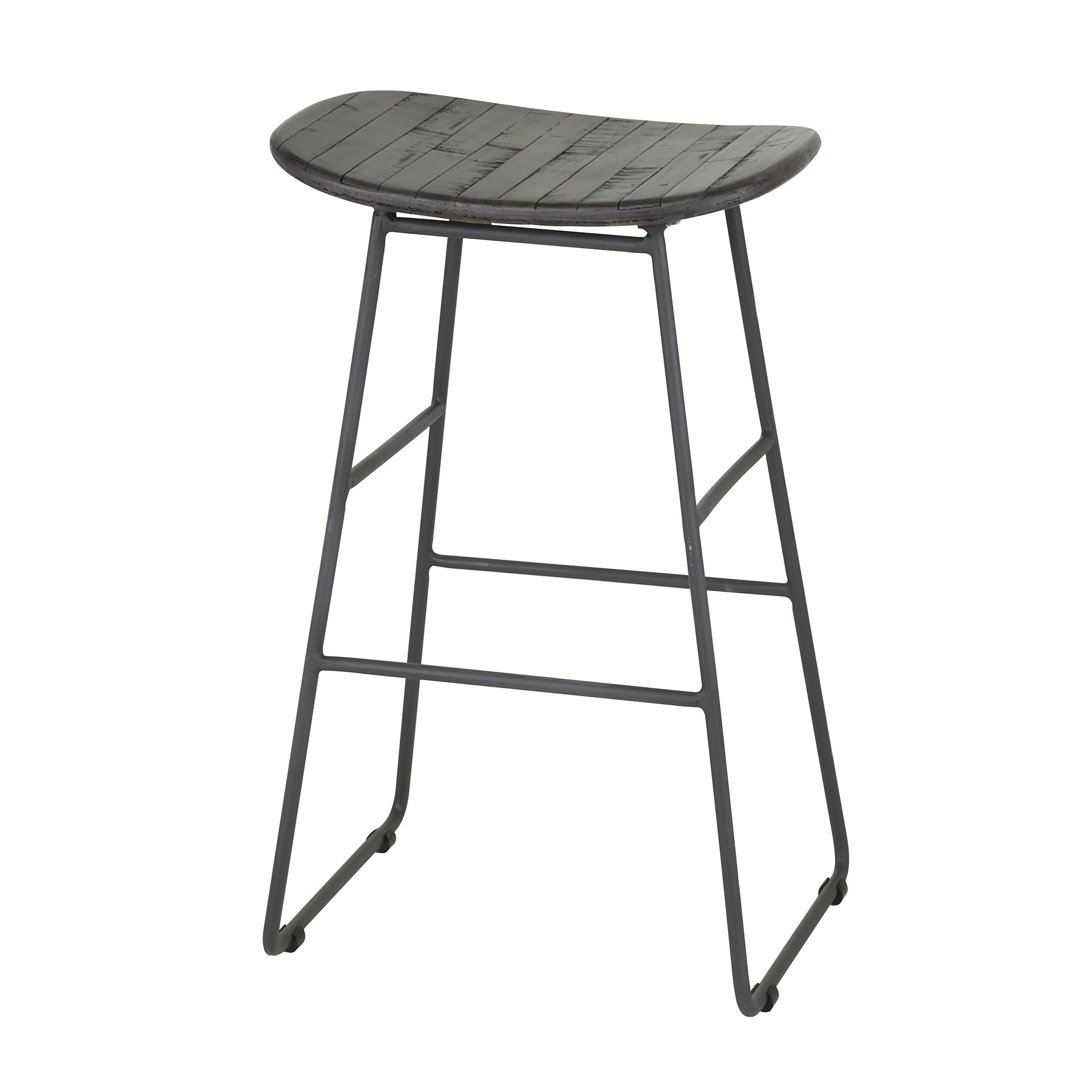 Teak Herringbone – Barhocker – 4er Set – Teak – Metall – Schwarz