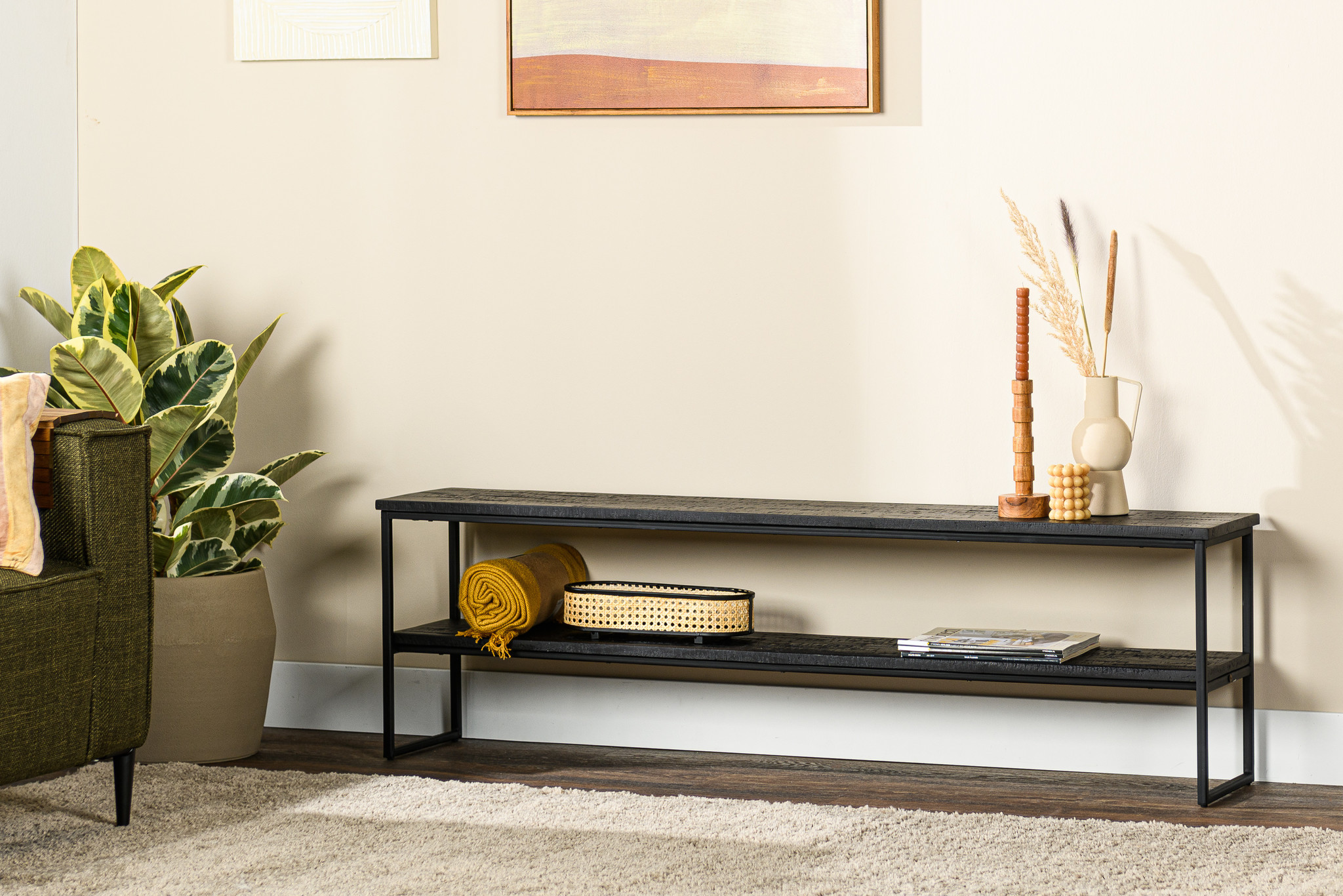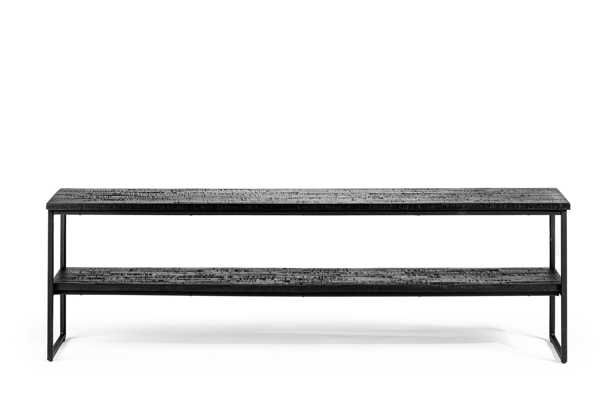 Dieser TV-Schrank ist aus gealtertem Teakholz gefertigt und wird von einem schwarzen Stahlrahmen getragen. Das Möbelstück verfügt über ein großes Regal über die gesamte Länge. Dieser TV-Schrank ist auch in einer kleineren Version erhältlich. Werfen Sie auch einen Blick auf die anderen Produkte der Teaky Blinders-Kollektion und stellen Sie schöne Kombinationen zusammen!