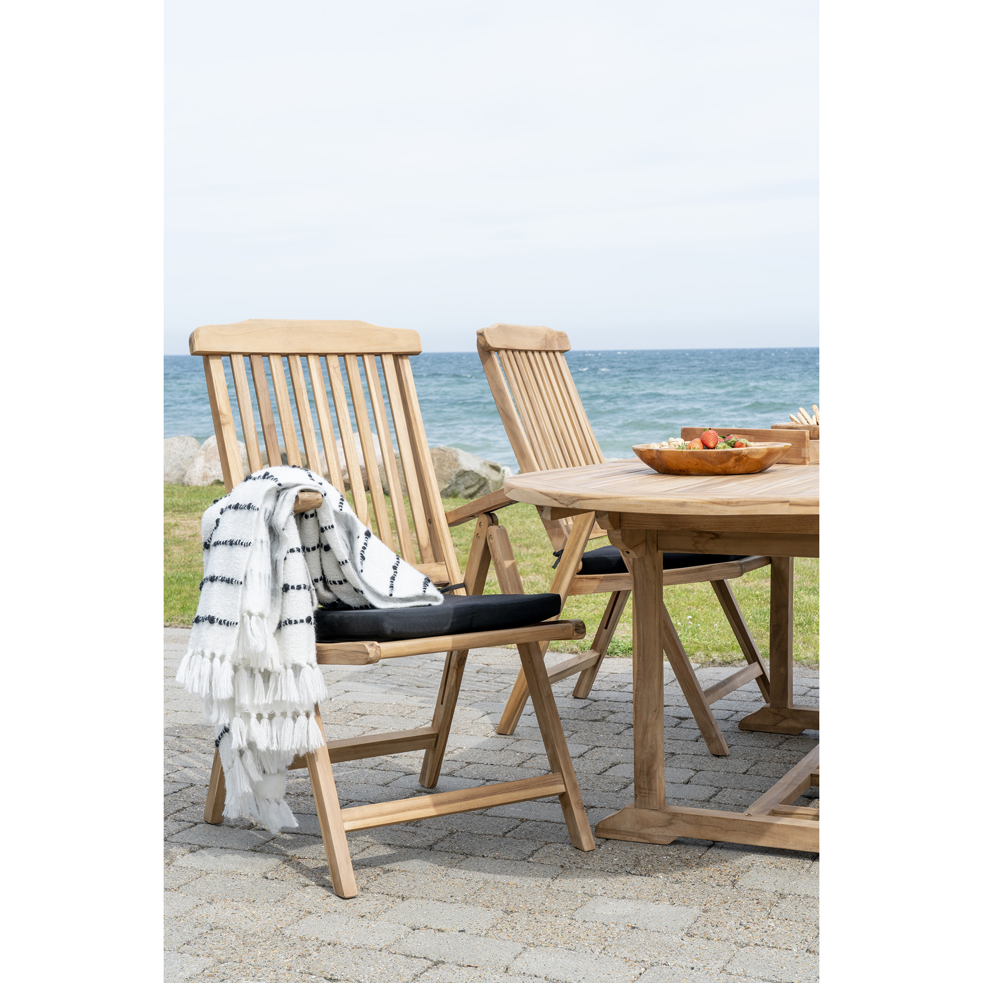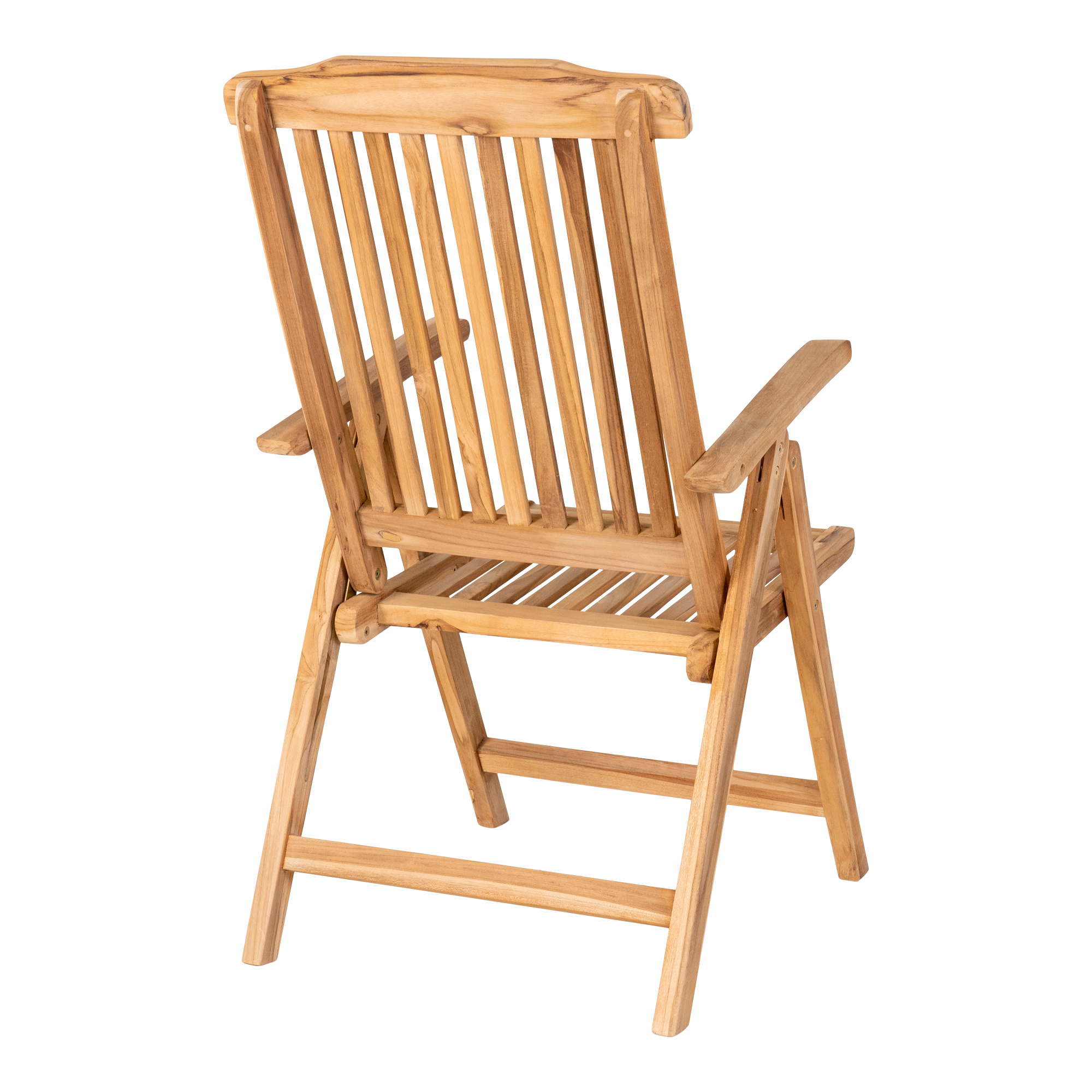 Der Teaky Garden Gartenstuhl ist aus Teakholz gefertigt, das für seine Langlebigkeit und Robustheit bekannt ist. Der Stuhl hat eine natürliche Farbe und passt somit in jeden Garten.