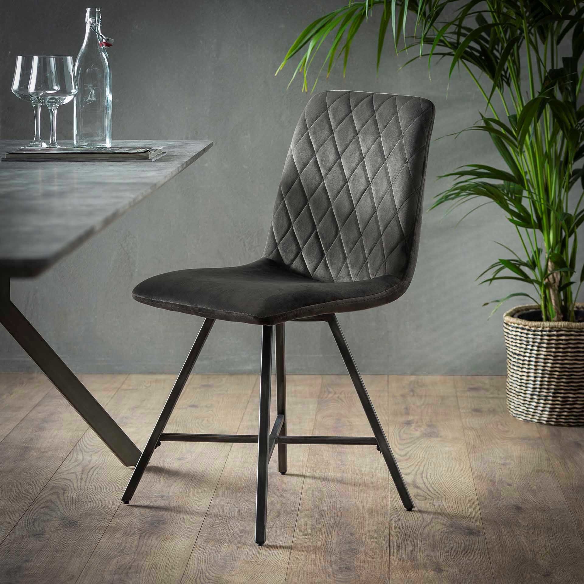 Diamond velvet – Eetkamerstoelen – set van 4 – antraciet velours – ruitmotief