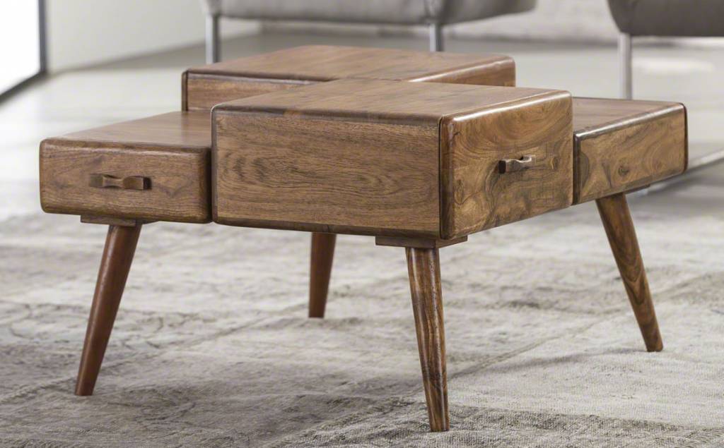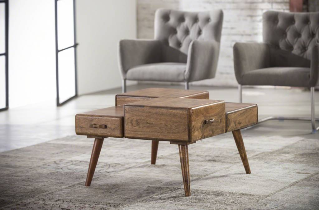 Deze salontafel behoort tot de speelse lijn Spring meubeltjes met hun verrassende uitspringende vormen.