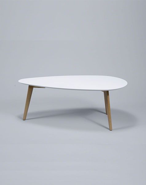 Duverger Vintage salontafel met afgerond driehoekig plateau in wit en eiken onderstel 100X50