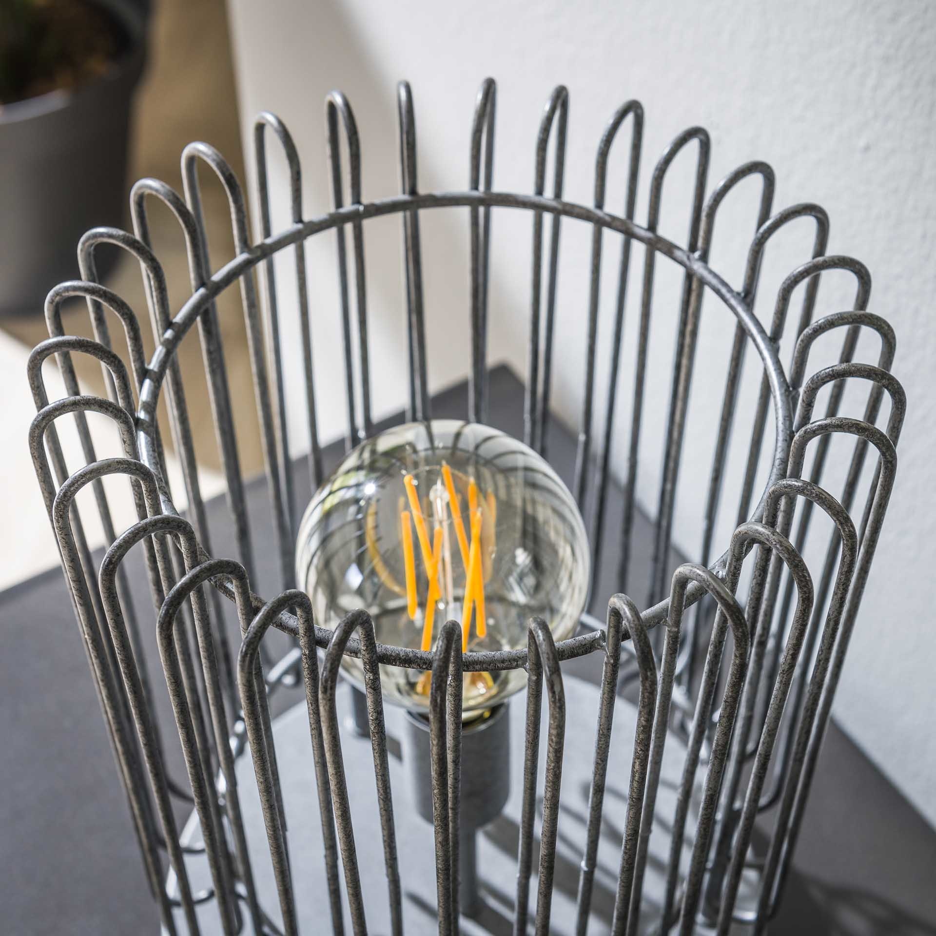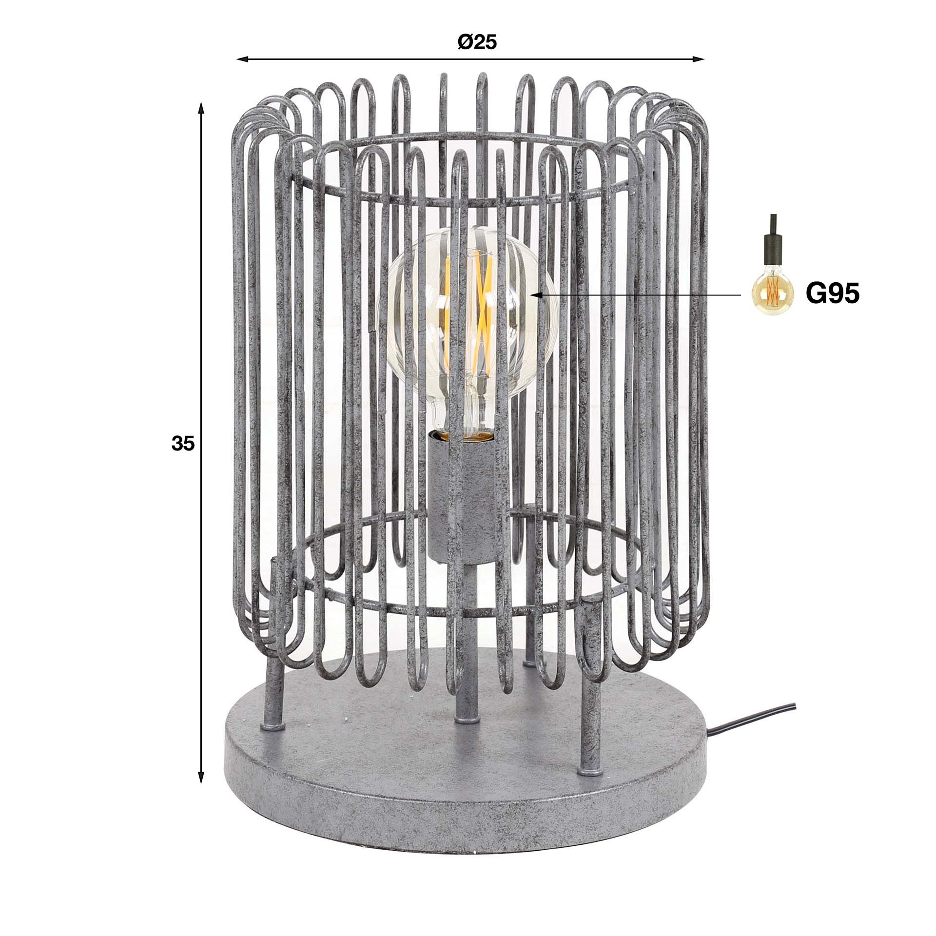 Deze stoere tafellamp is vervaardigd uit metaal met een finish in oud zilveren finish. Dankzij de spijlen wordt het licht op een speelse maar gedoseerde wijze in uw woonruimte verdeeld. Deze collectie bevat tevens een vloerlamp, hanglamp en plafondlamp. Lichtbron niet meegeleverd.